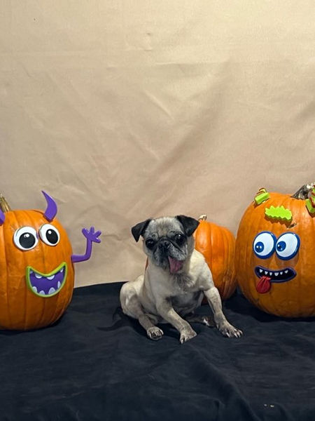 Oh sweet Momo man! He came to us under a heartbreaking circumstance. As an owner relinquishment, he was a senior who had lost function in his back end, had a horrible mouth and teeth and was an expresser. The vet at animal services suggested humane euthanasia but thank goodness Pug Nation saw more in him!