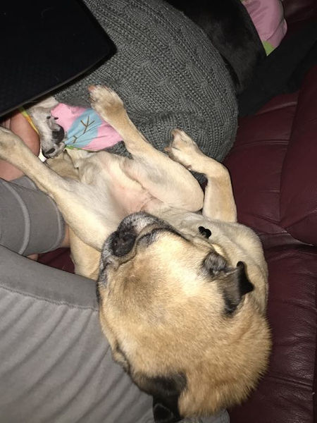 This sweet man was relinquished with four of his siblings when his owner passed away. He was truly just a happy and simple soul. He had hind-end weakness which caused him to walk like an ice skater and occasionally vestibular disease would hit him for hours at a time. As time passed, his list of illnesses increased and he completely lost feeling and movement in his backend, which was a factor of why he became incontinent. Closer to the end, dementia became a factor and at times it felt like he could and did use it to his advantage for extra treats. He was the best alarm clock and never missed a 7:30 AM wake-up call… ever! Truth be told, Morris Borris could also be a bit of a messy guy overnight, so a special plastic laundry basket fitted with homemade sheets then placed on Kasey's bed worked wonders. Without Kasey being within smelling distance the screaming would start and we learned everything we could about cognitive dysfunction (dog dementia). Even with all his ailments, it was easy to tell that he still was happy in life, but it was also just as easy to tell when he wasn’t. We know it's hard to believe that you could miss something so much that was such an incredible amount of work and time but it is true. Oh, Morris man, we do miss you so!